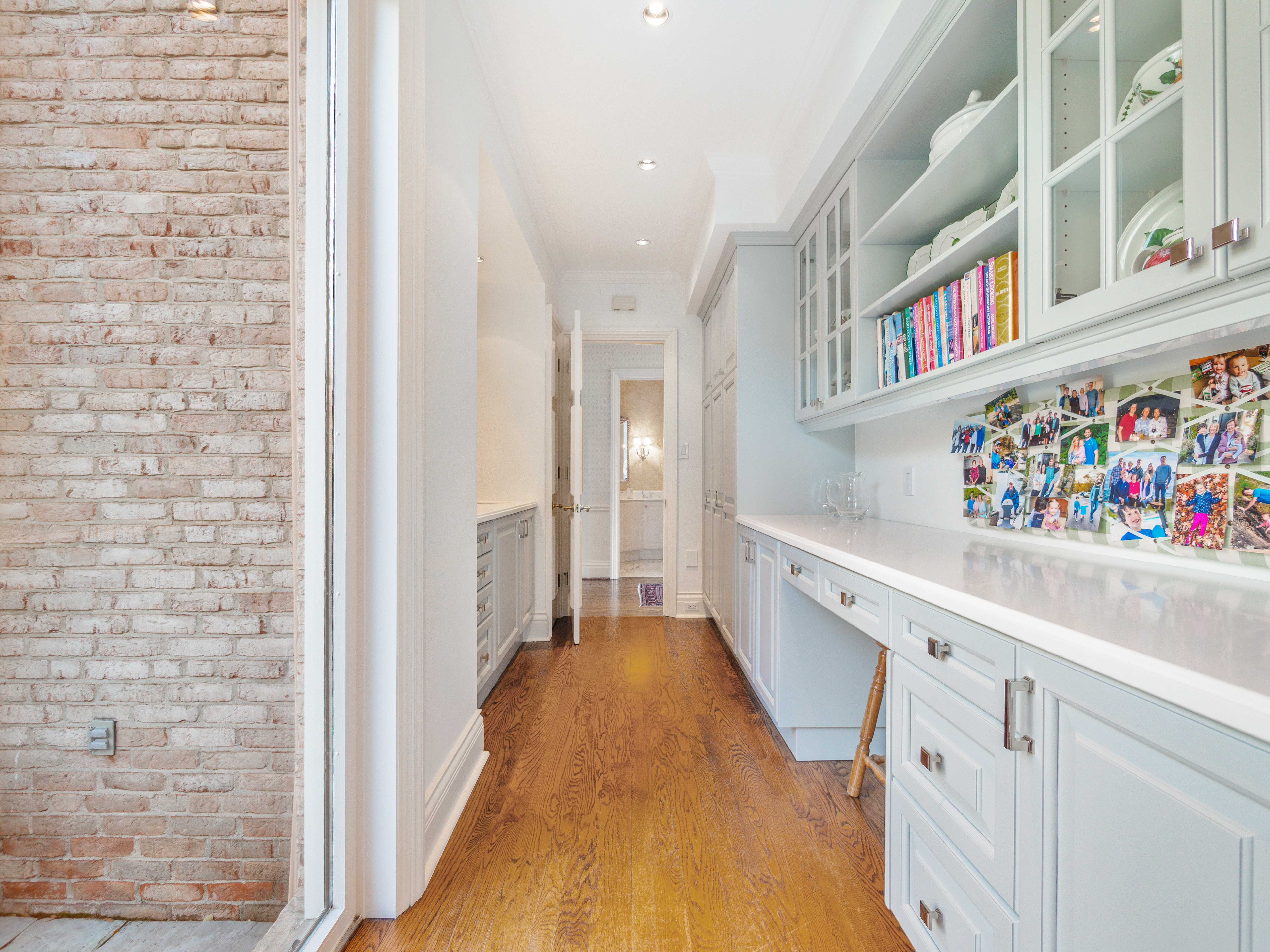 pantry storage and main floor workspace modernize what would have been a traditional servery.