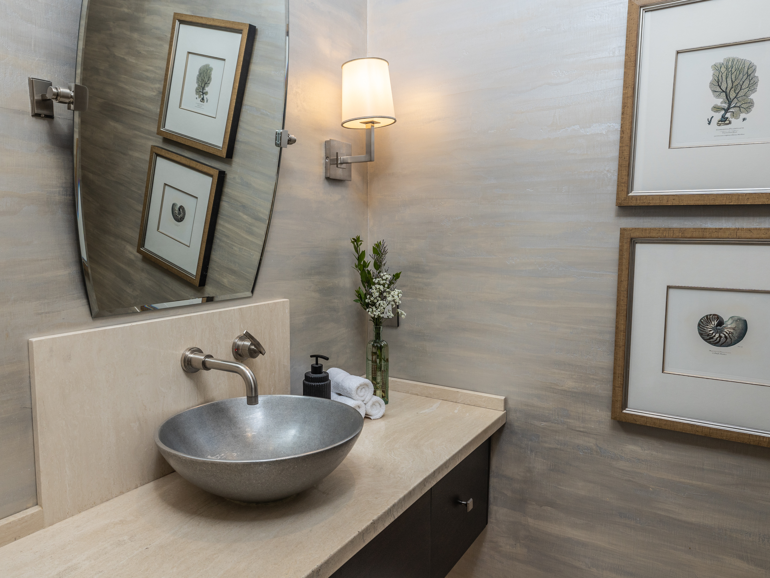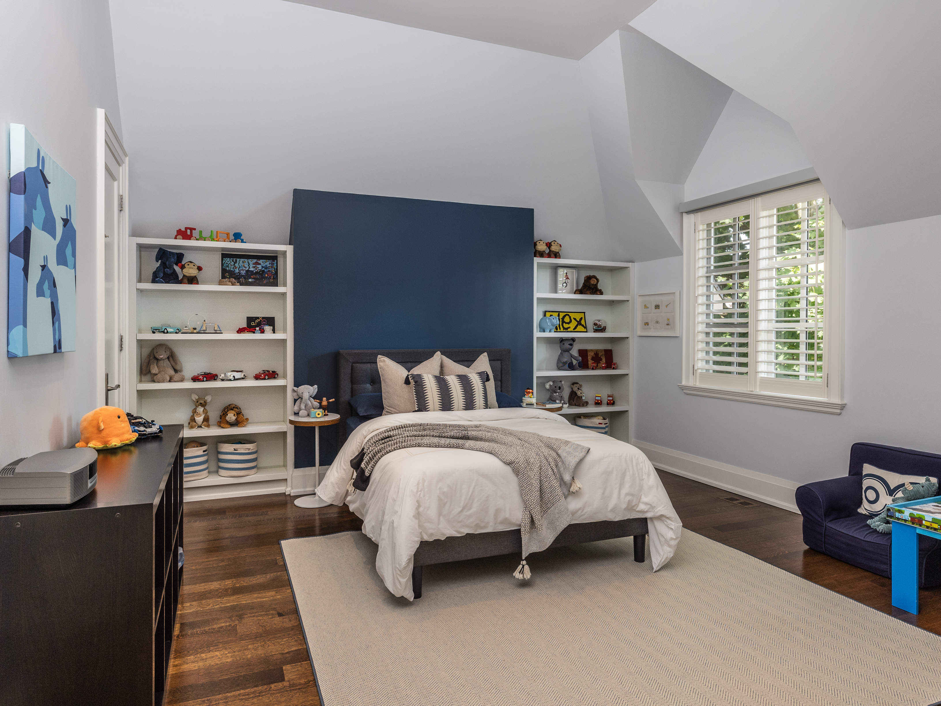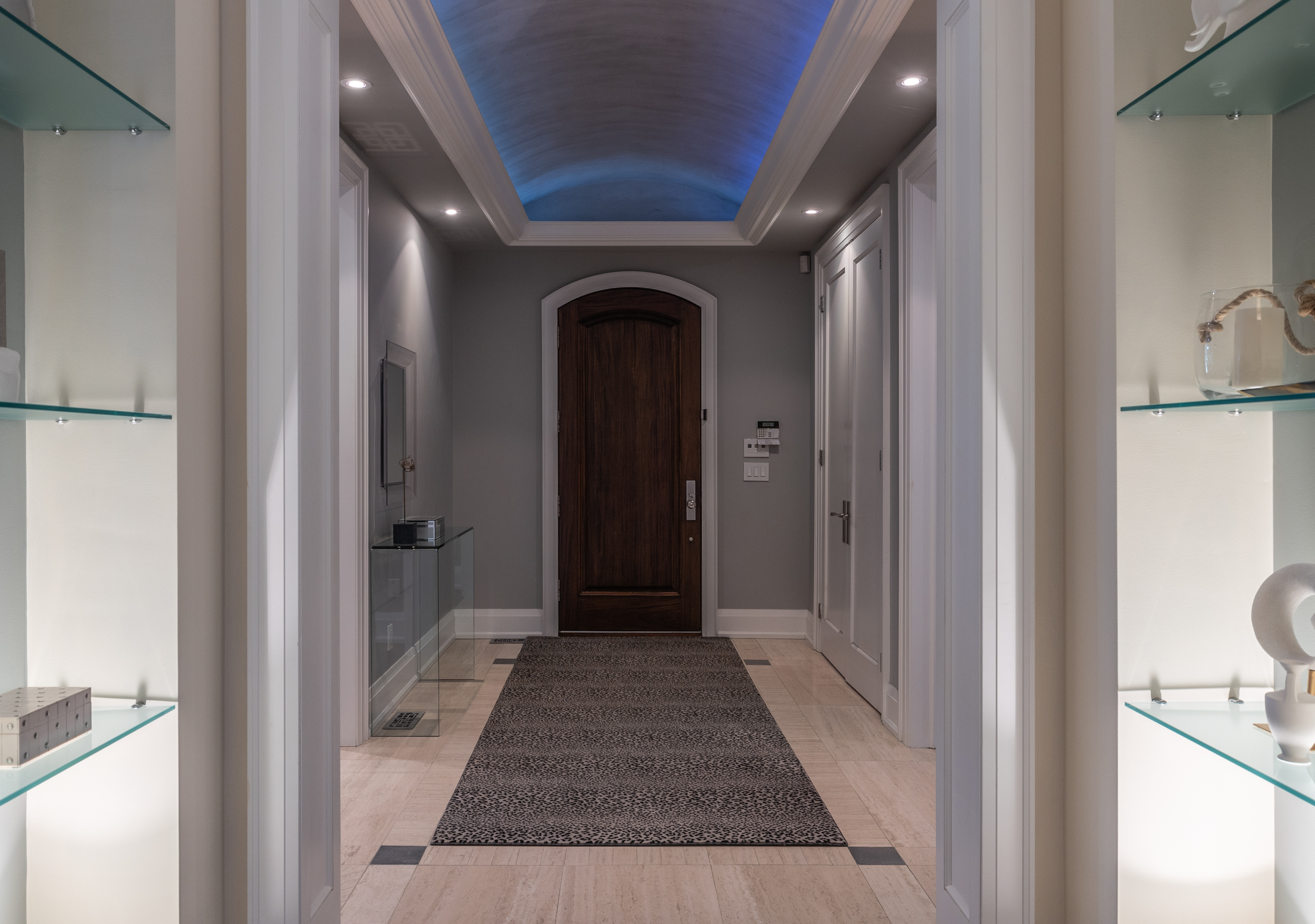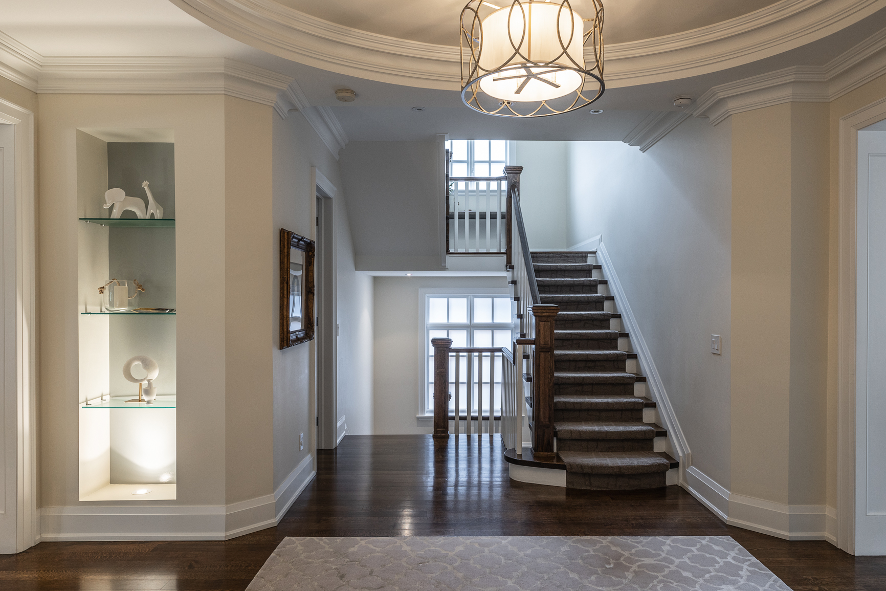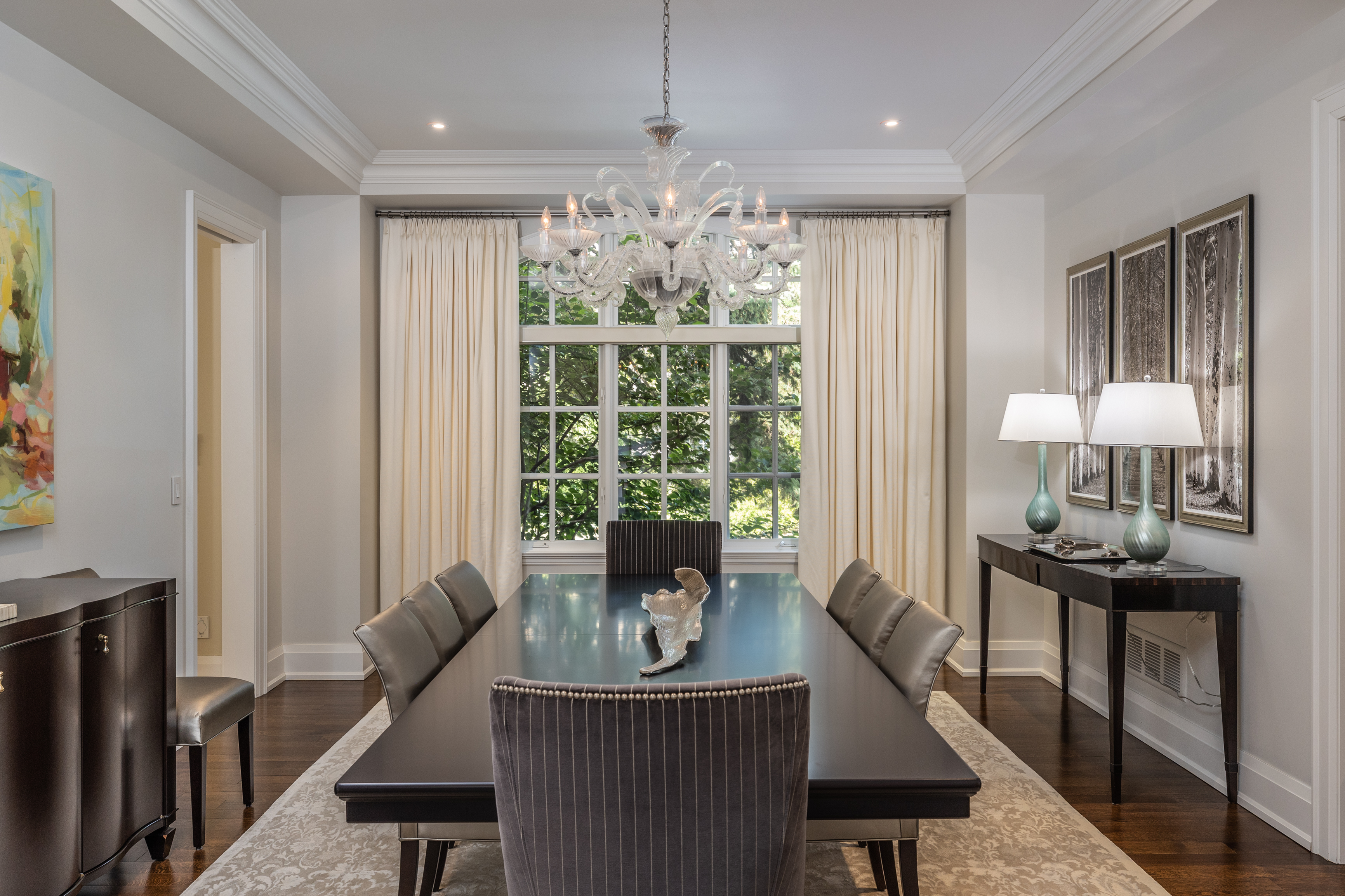 Come inside for a peak! The front foyer is most welcoming and perfectly flanked by the formal living room and private library. The library is a special place and currently used as a home office. The rich walnut built-in shelves, designer wallpaper and a french door walk-out to the south facing front terrace. This room has a sophisticated feel and pleasant ambiance for the current work culture that embraces working from home.
