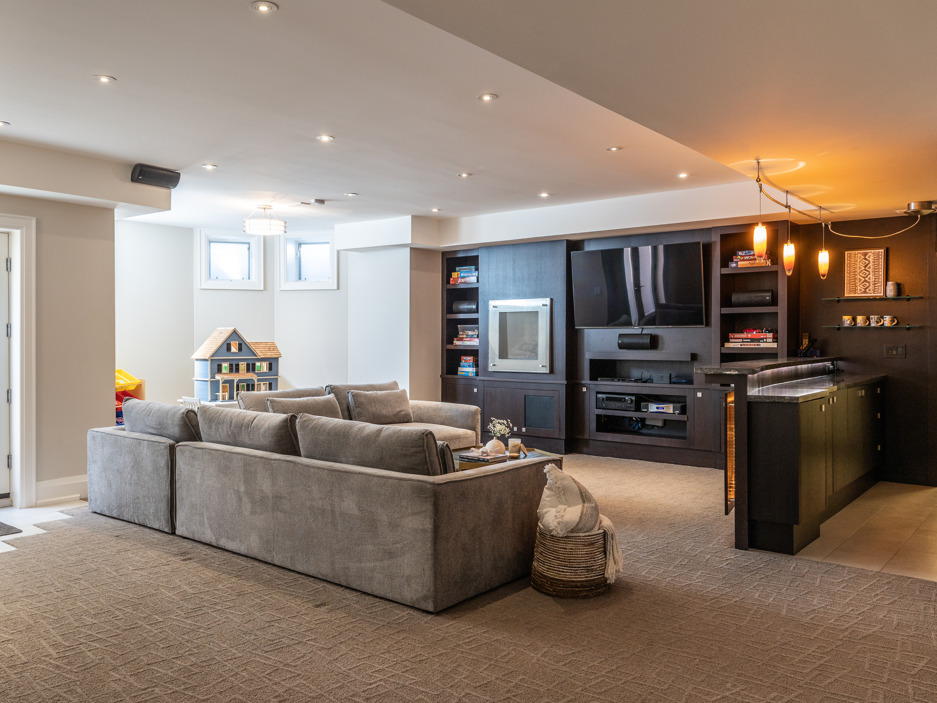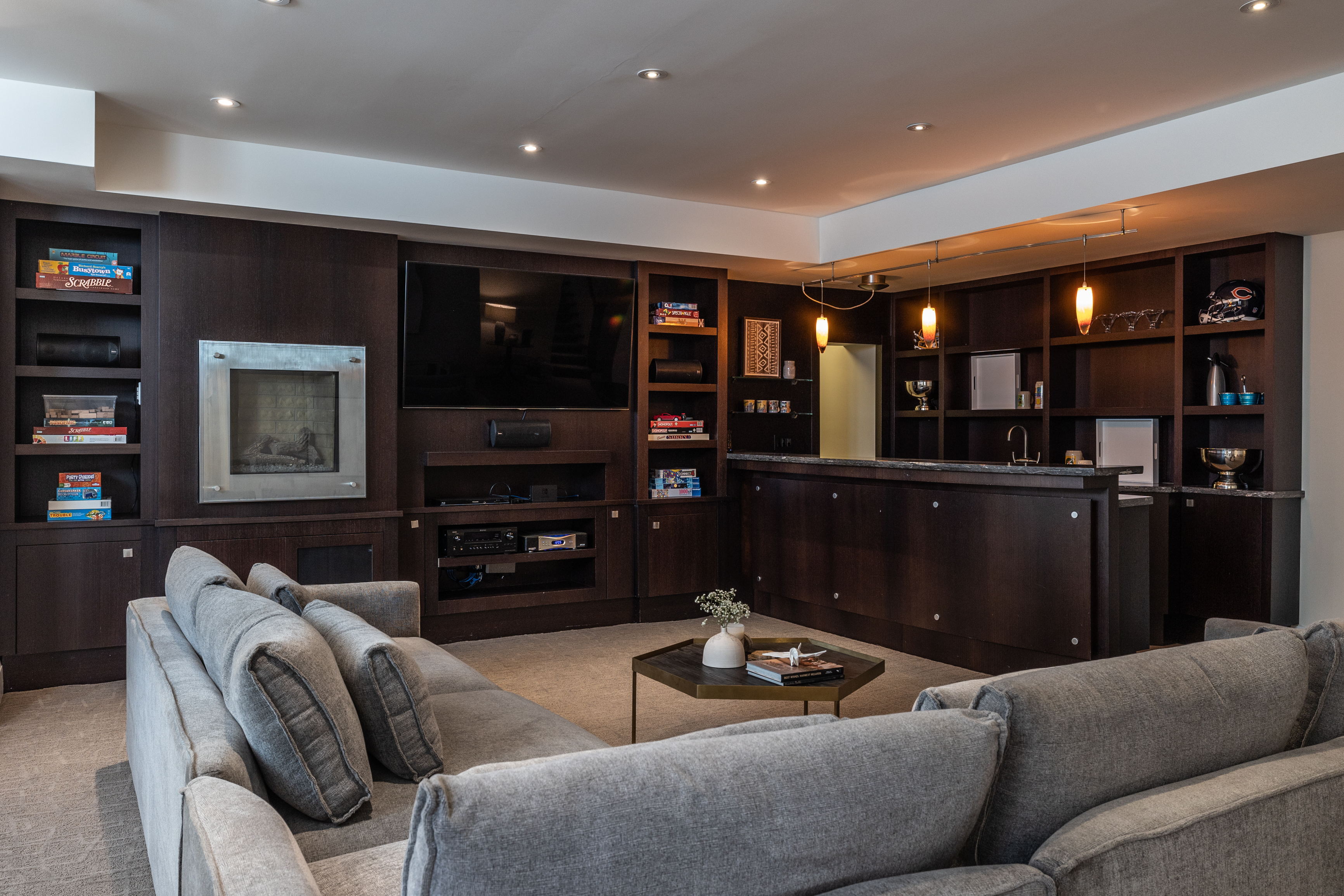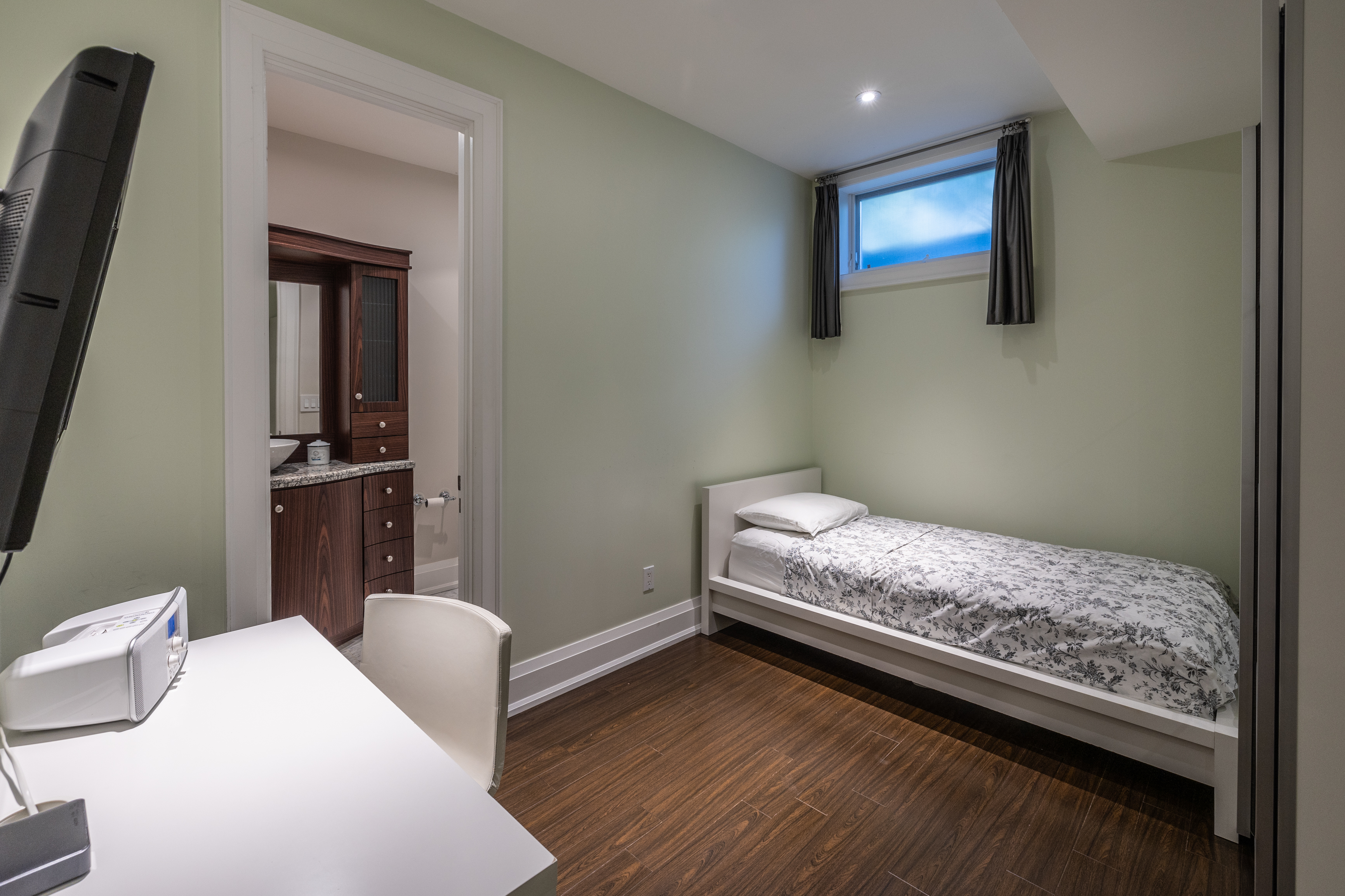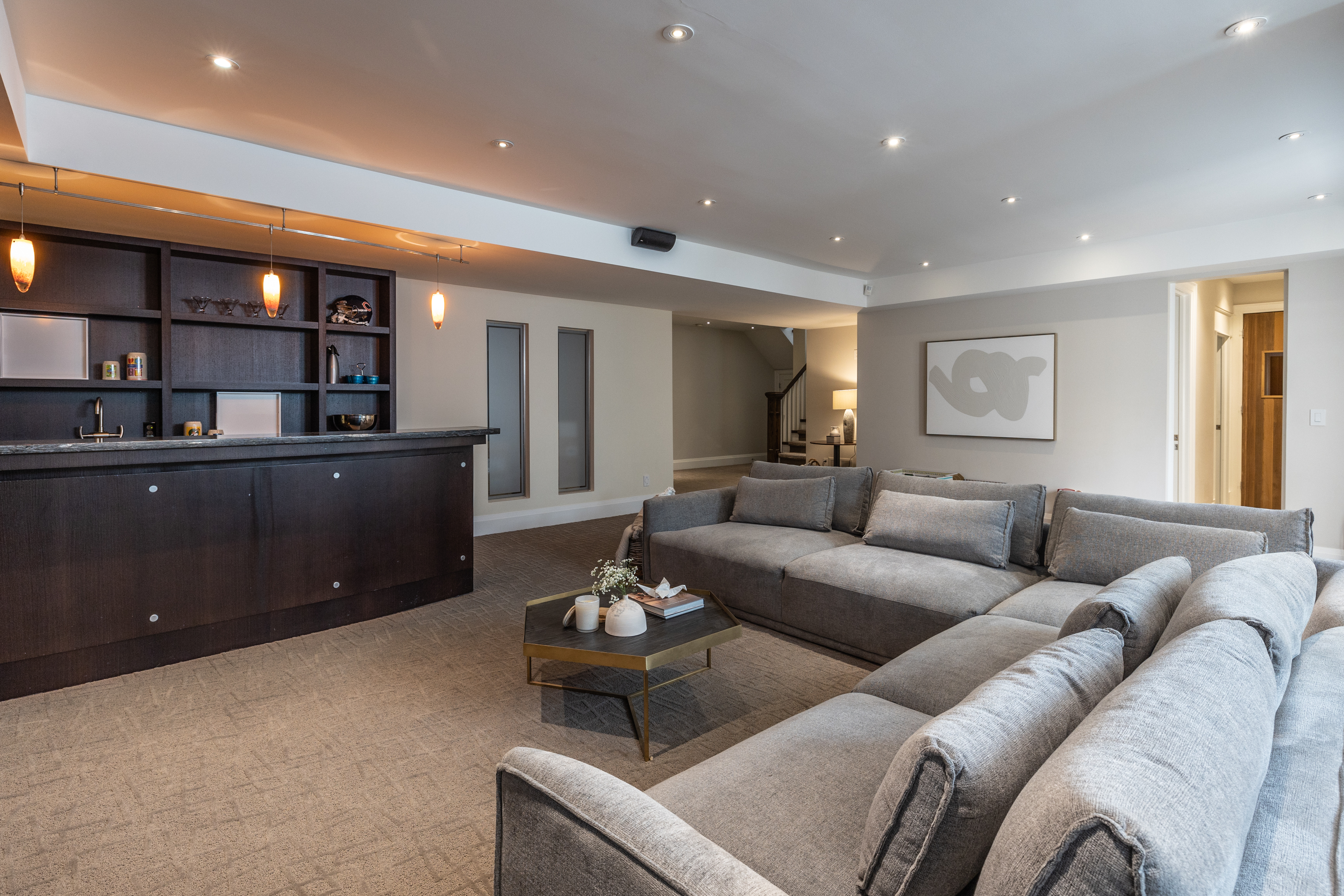 The lower level of this family home is a cohesive space. Function and purposeful design comes to mind. The wet bar is spacious enough to function as a possible second kitchen and the secure redwood wine cellar amps up the entertainment factor. The recreation room has a walkout to the backyard pool and the 3-piece bathroom and change room has been perfectly positioned beside the walkout.