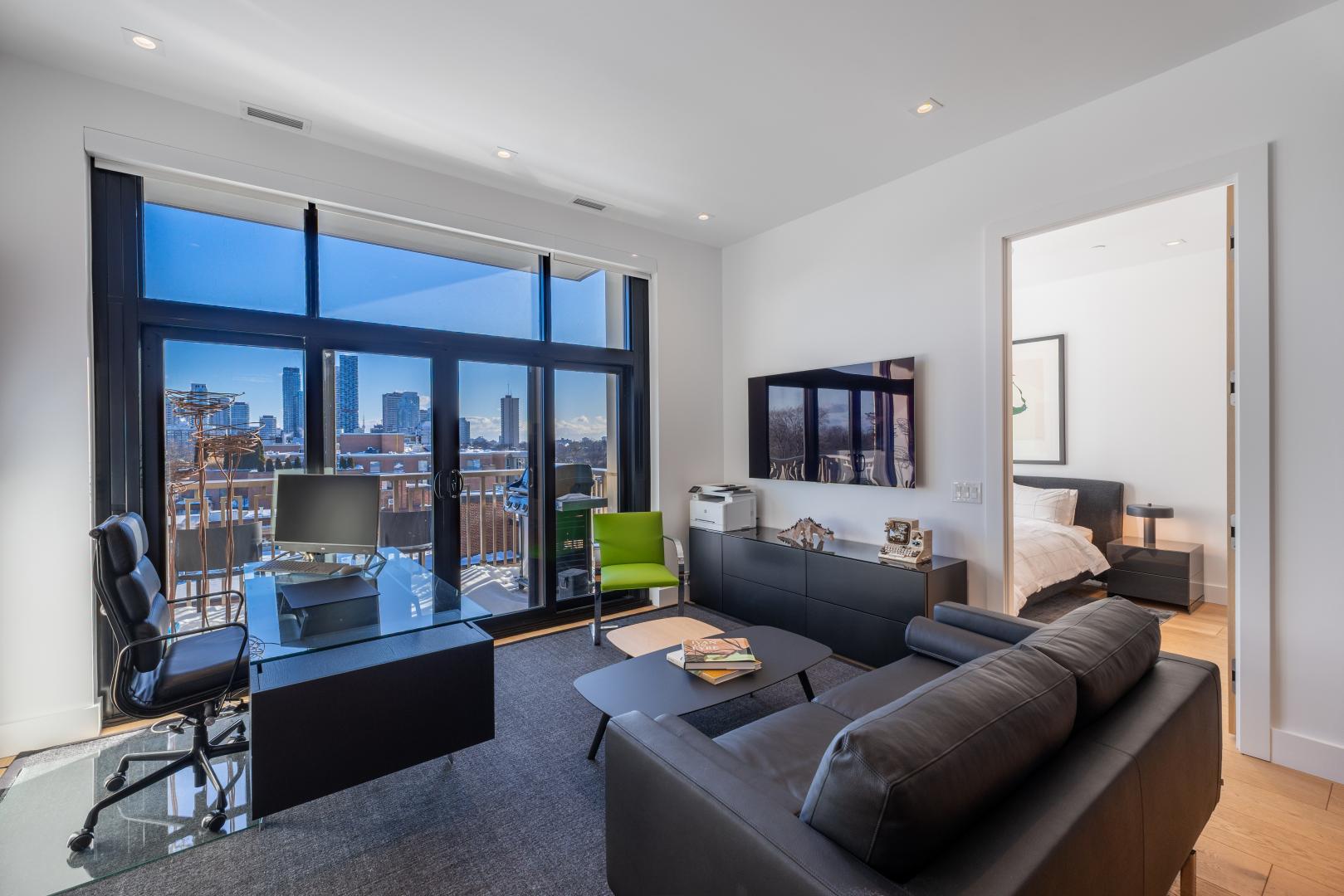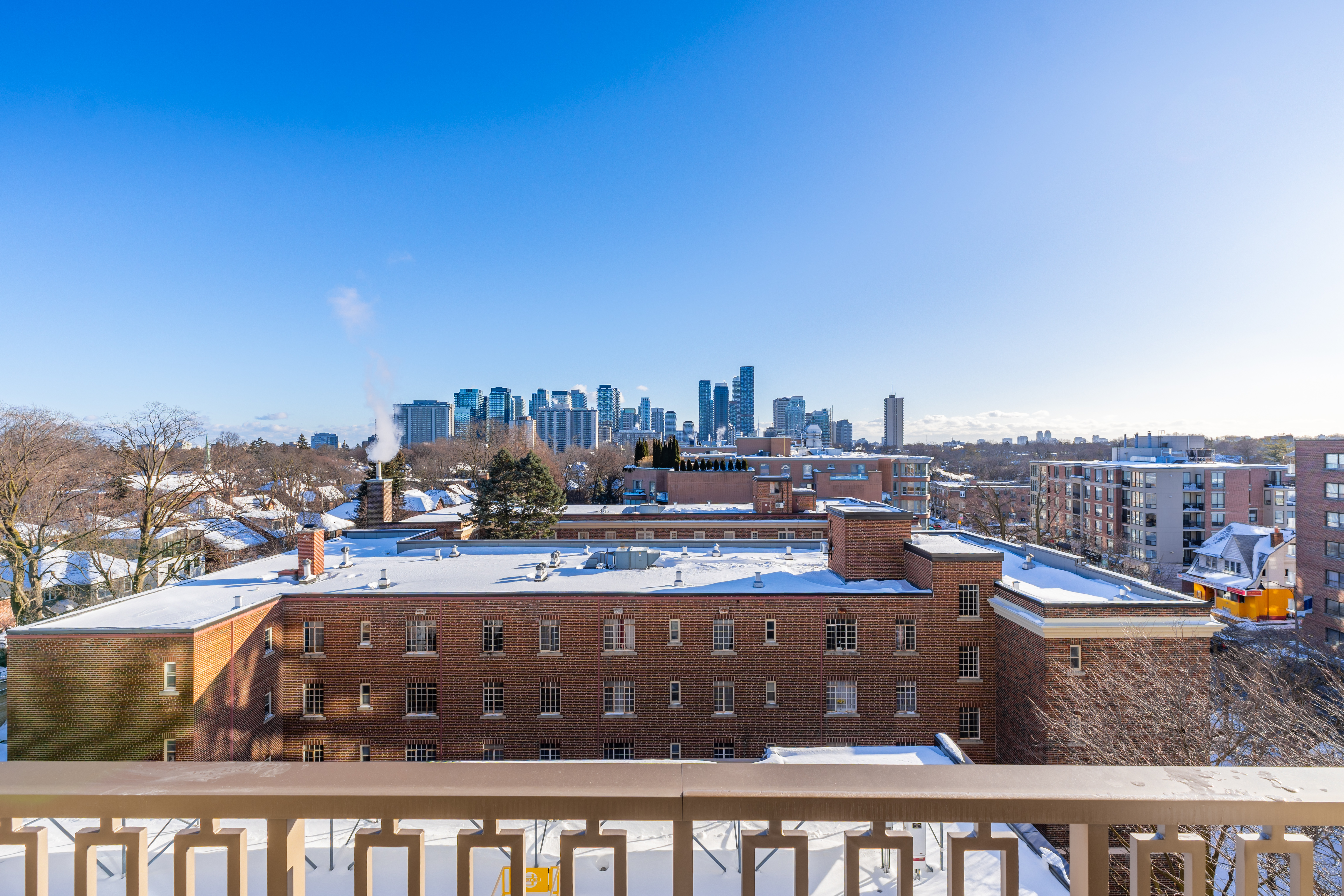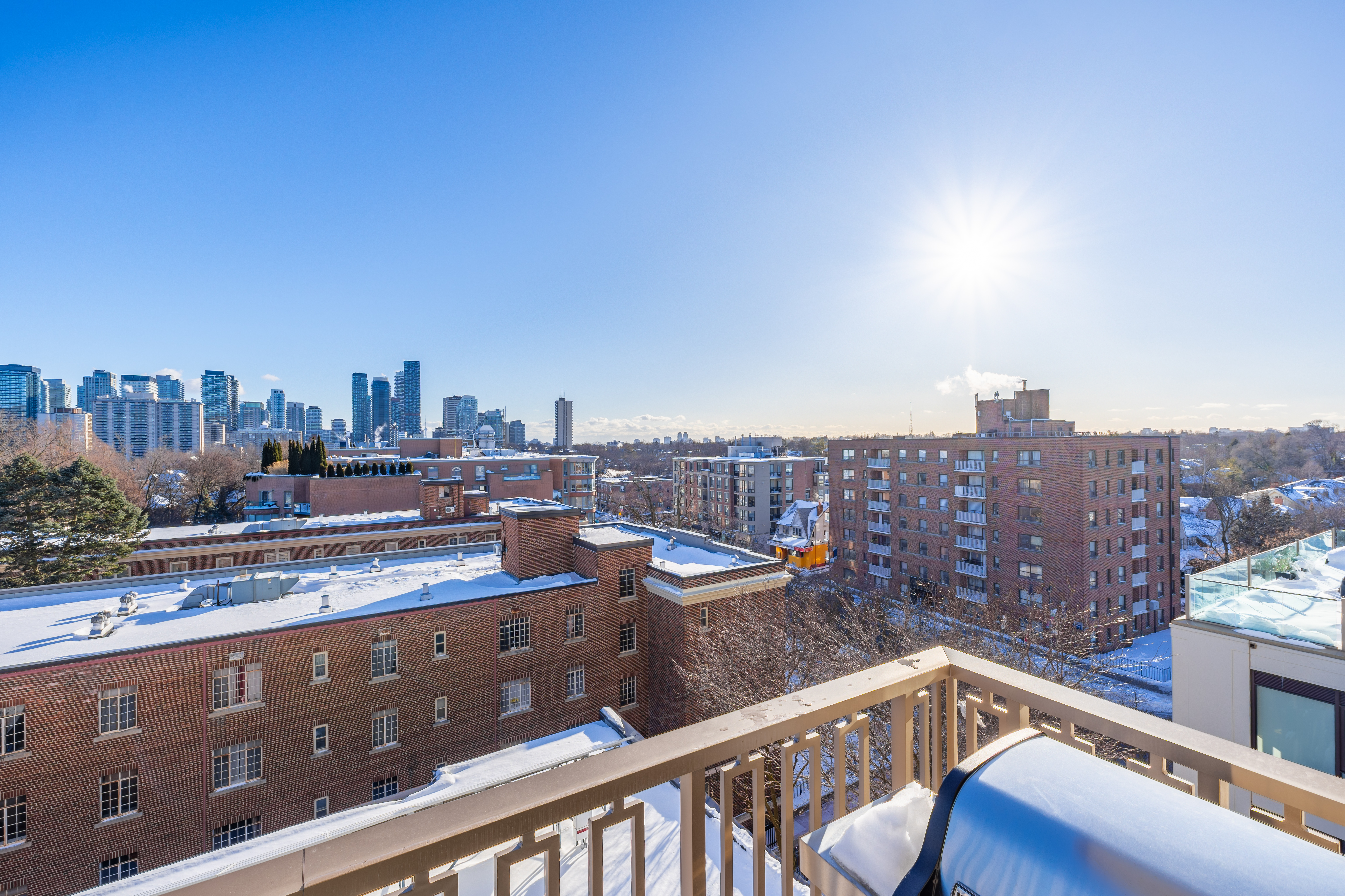 What a view! This unit offers an unobstructed sensational south vista of the neighbourhood tree tops and the highrise residential buildings at Yonge and Eglinton. This balcony offers a gas line for an outdoor grill and an electrical outlet for enhanced lighting or portable audio.