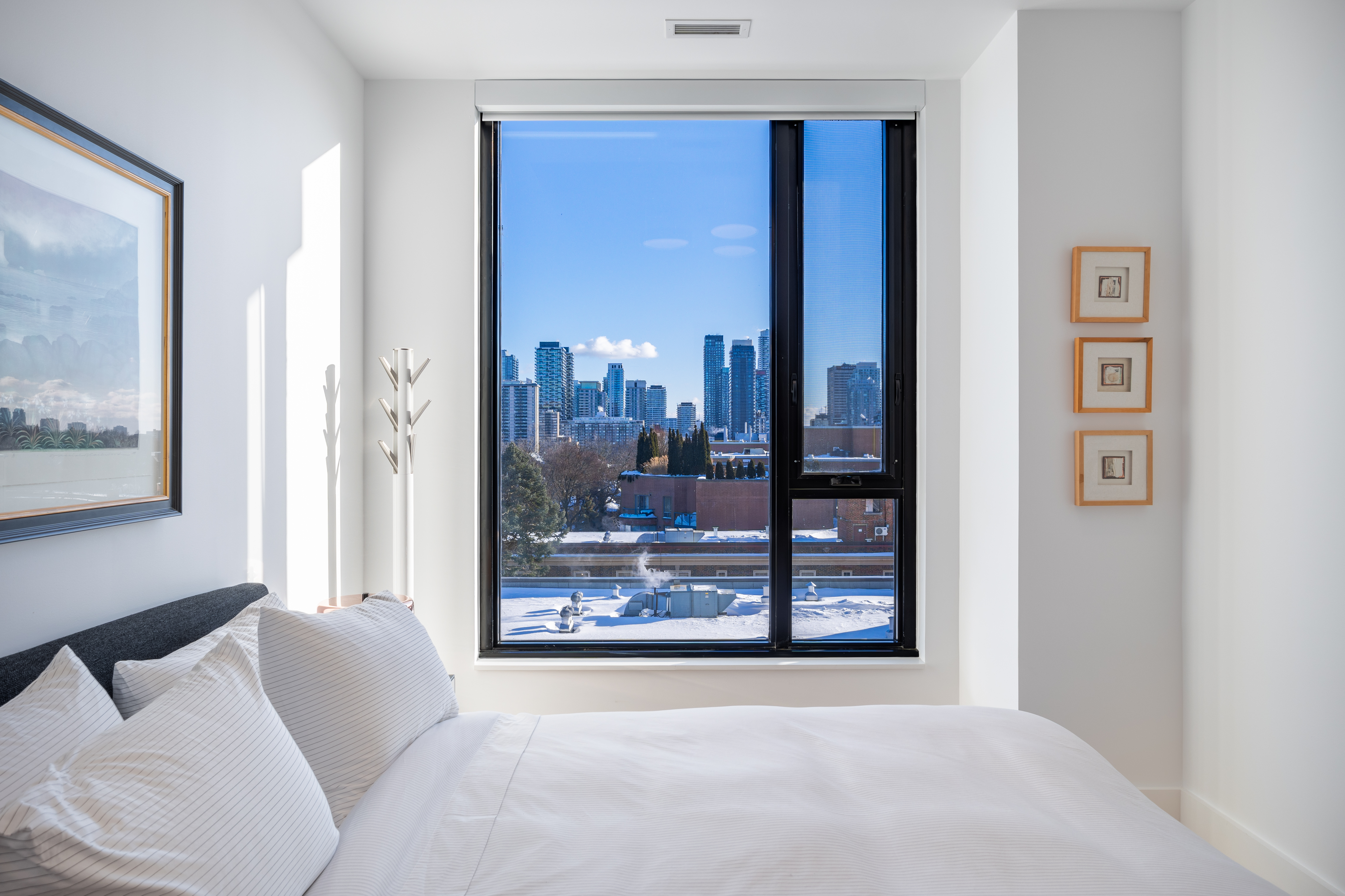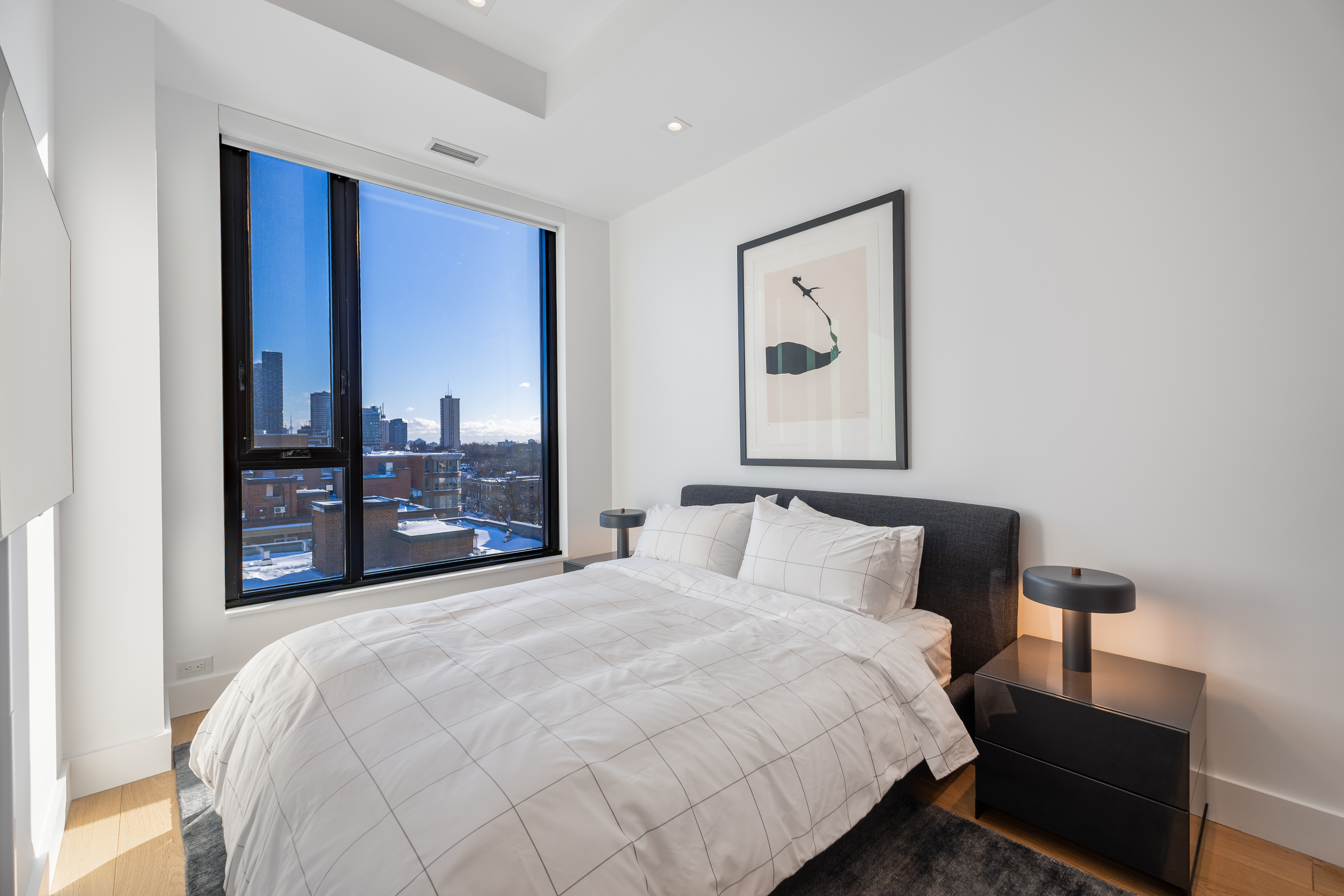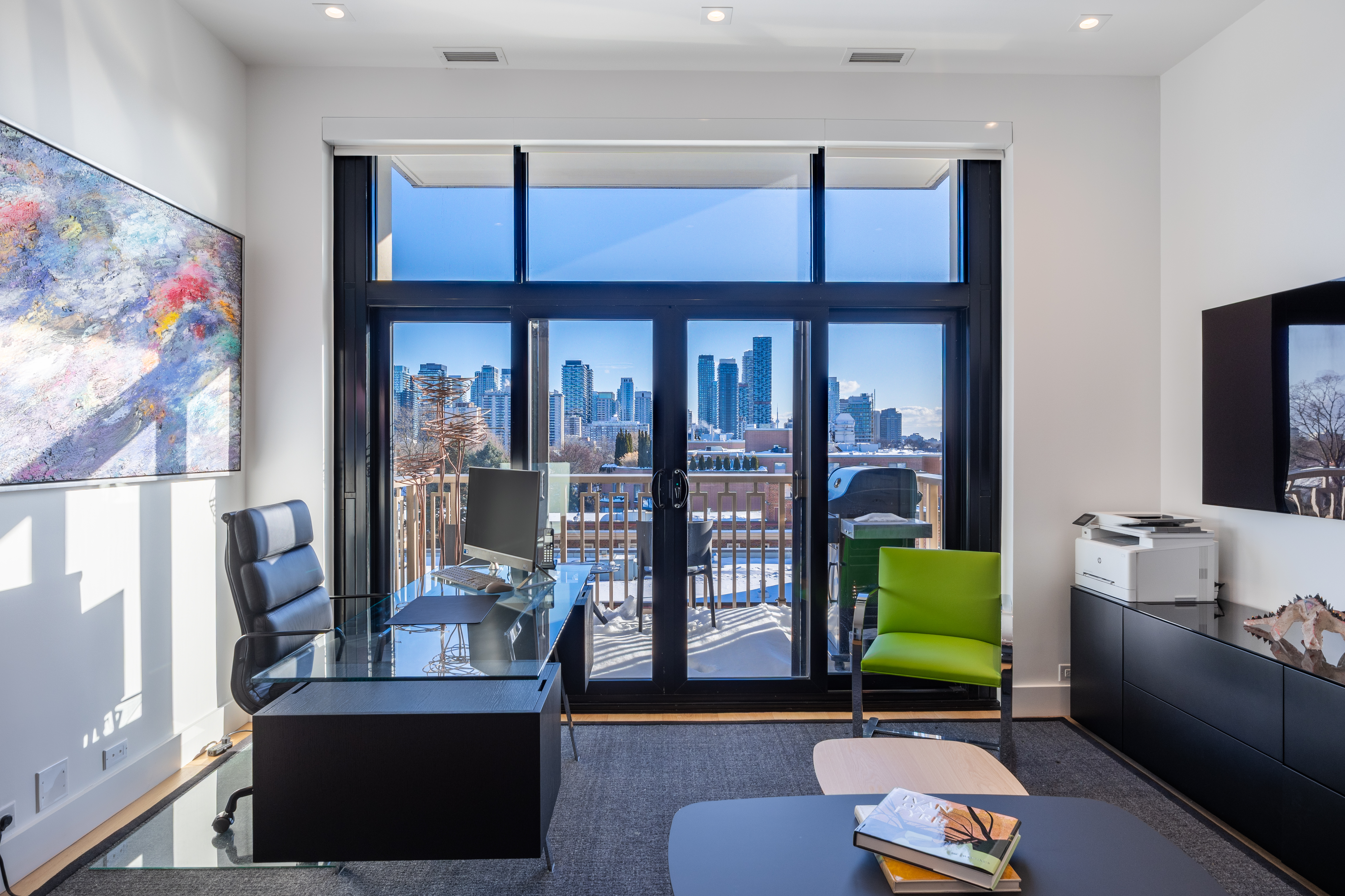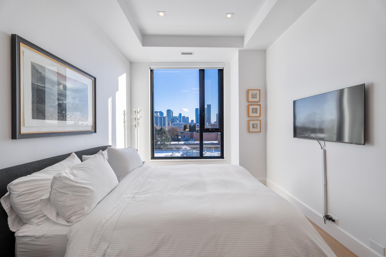 What a view! This unit offers an unobstructed sensational south vista of the neighbourhood tree tops and the highrise residential buildings at Yonge and Eglinton. This balcony offers a gas line for an outdoor grill and an electrical outlet for enhanced lighting or portable audio.