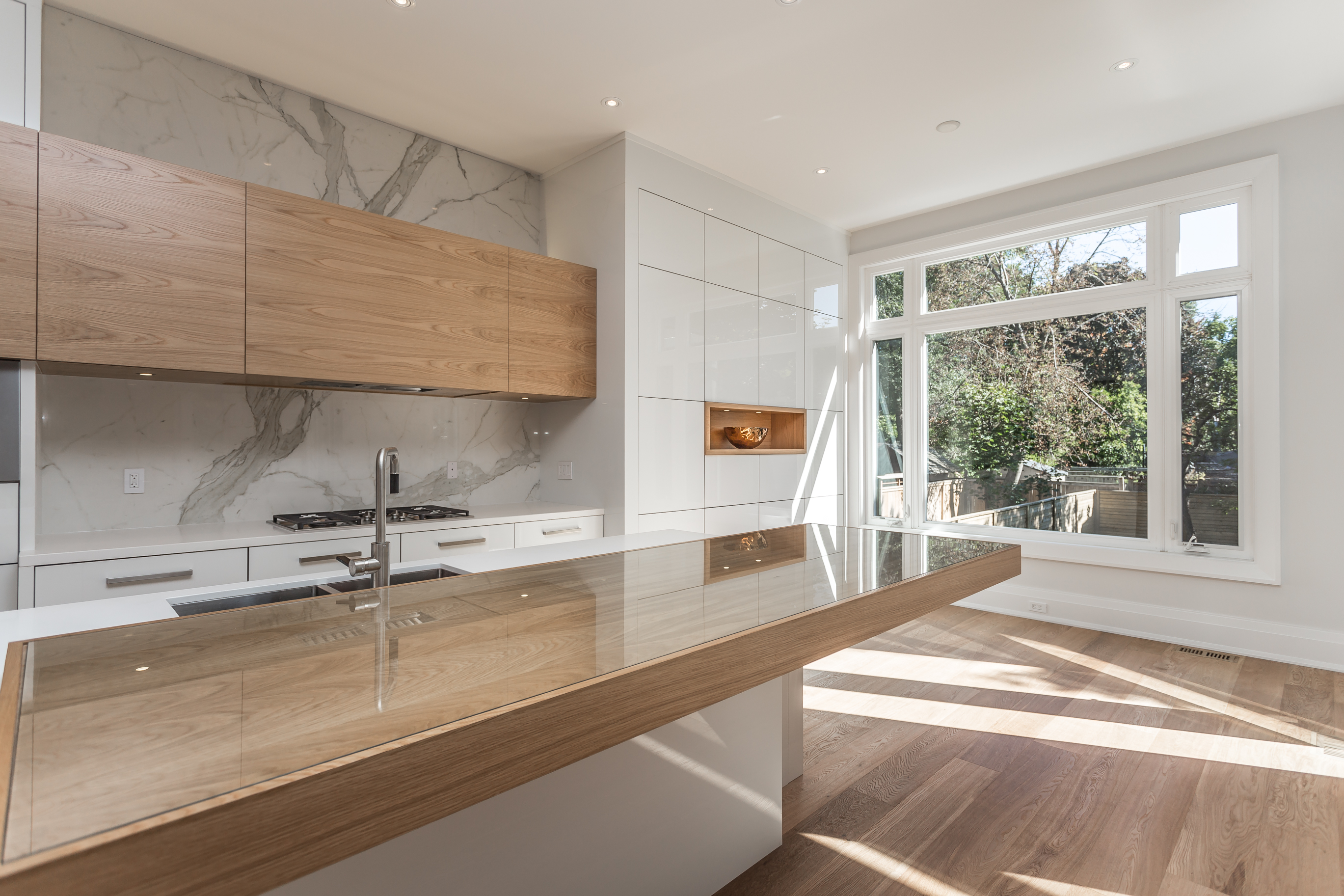 This Moore Park home, finished with Brick & Indiana Limestone is flooded with natural light and offers over 5000 sq. ft. of incredible space on three floors using the finest finishes in White Oak, Glass & Stone. Suspended glass staircase, massive windows, angular skylights, 10 to 13 ft ceilings, stunning kitchen, two laundry rooms, a fabulous master suite and walk out lower level with mud room, doggy shower and in-floor heating, two separate mechanical systems are a few of the fabulous features of this home.
