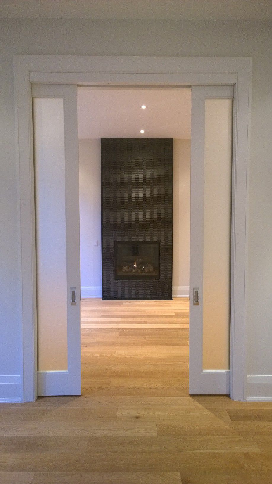 Private drive with attached garage with flush wood Mahogony door and interior entrance with parking for two cars in the driveway.