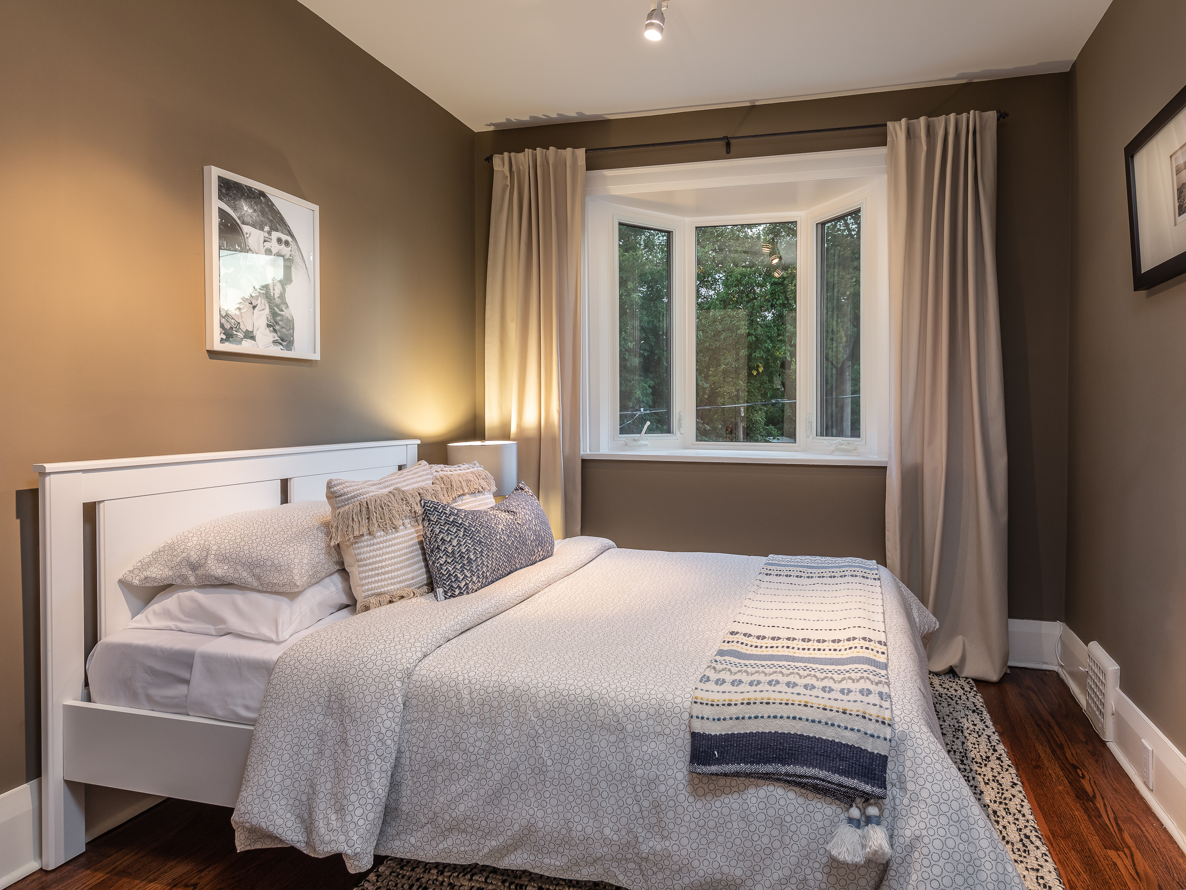 The remaining two upstairs bedrooms have hardwood floors, bright bay windows and closets with organizers. The main 4-piece family bathroom has neutral finishings and offers incredible natural light from the oversized skylight. A hallway linen closet finishes off the second floor.