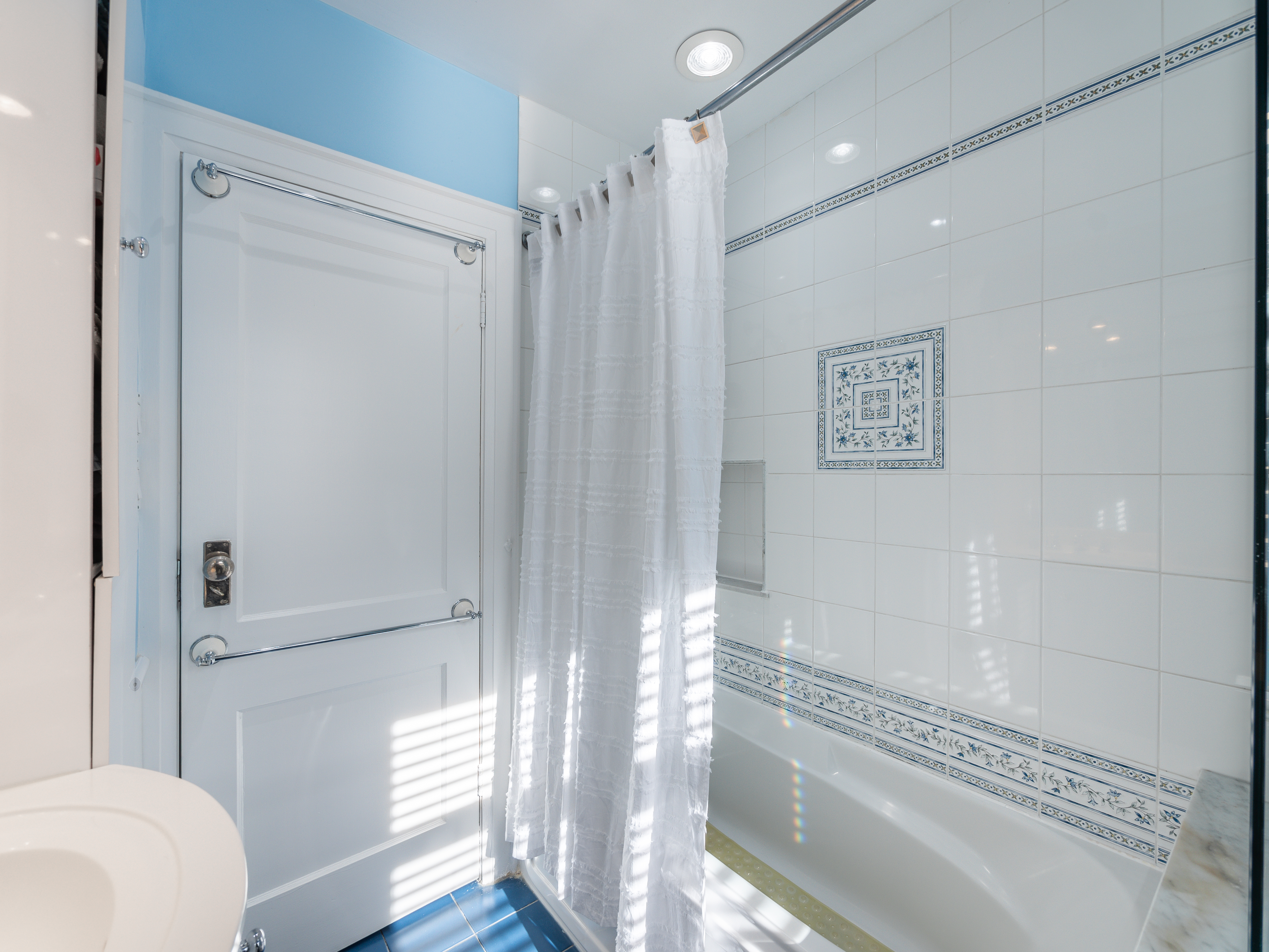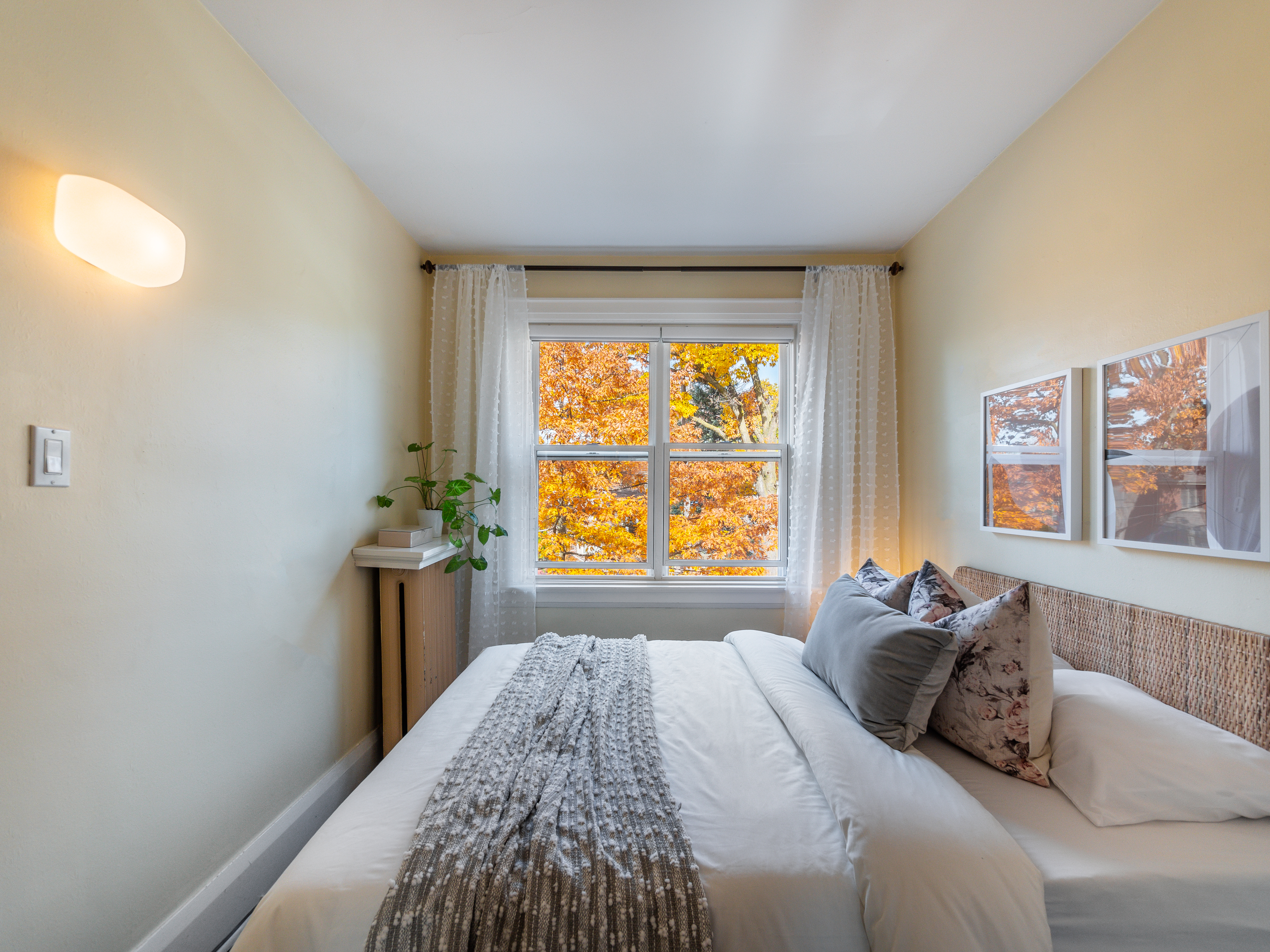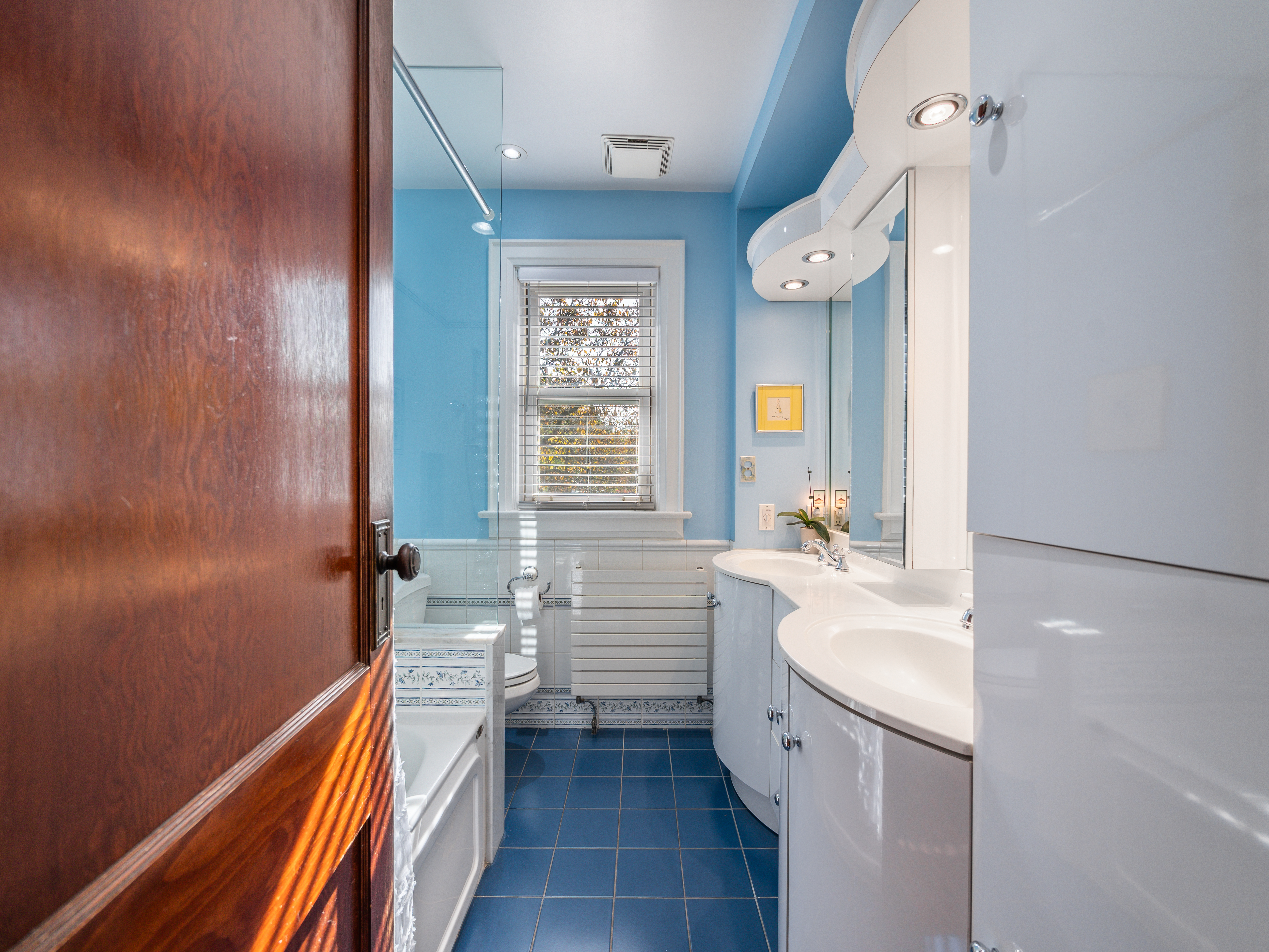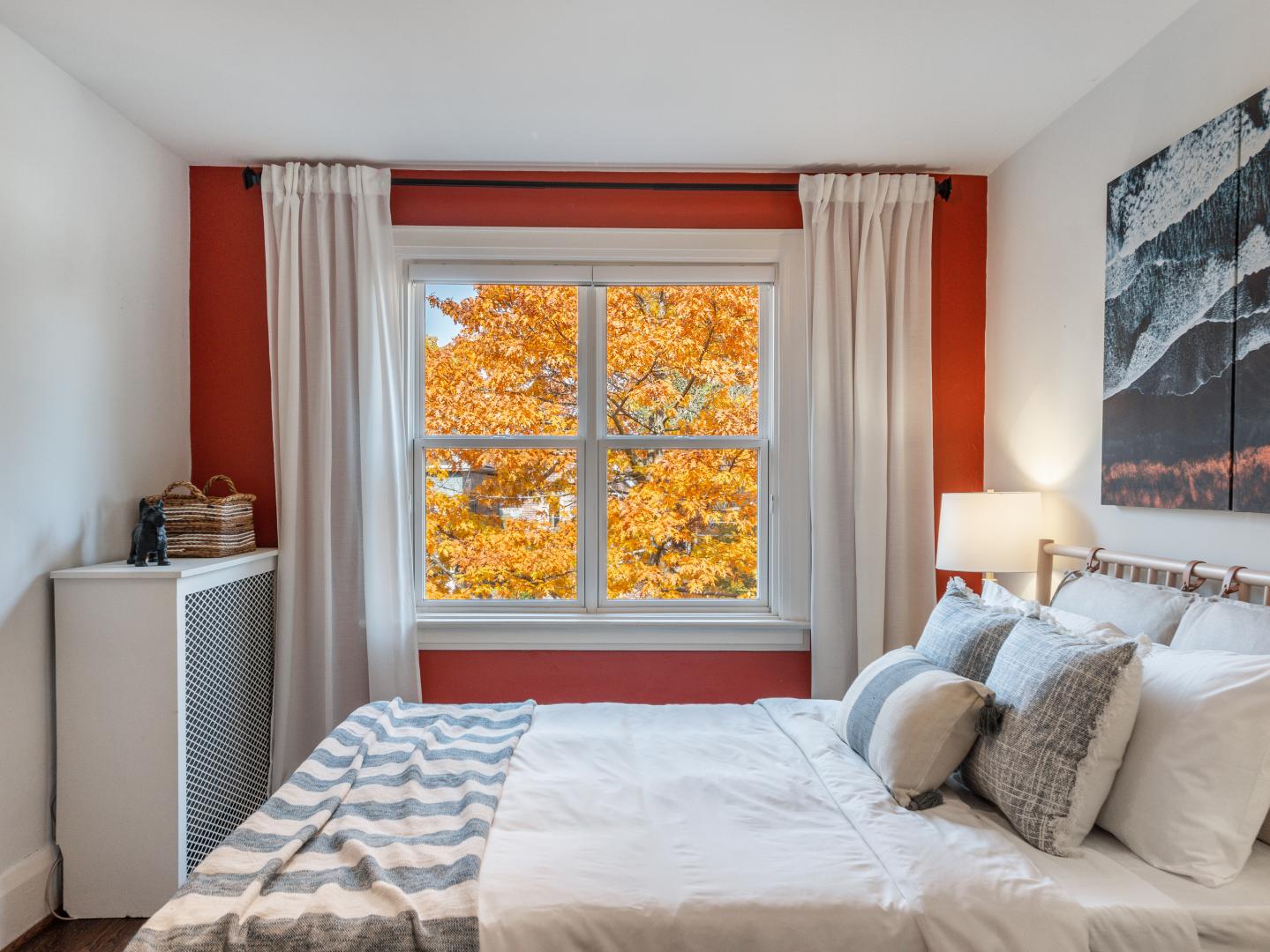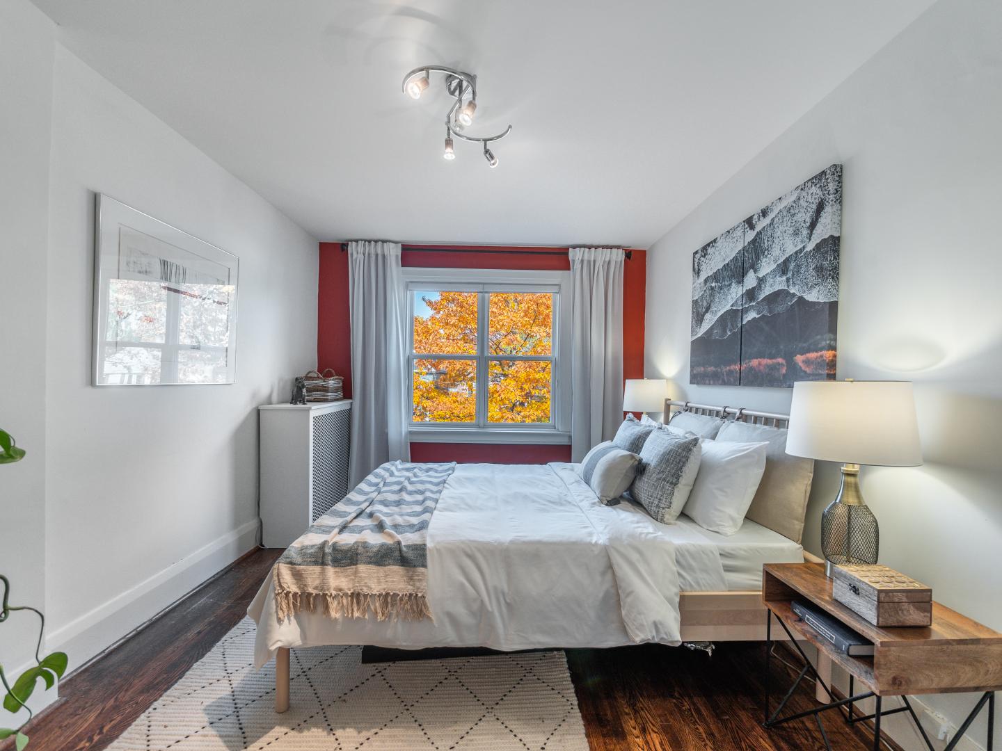 The main floor layout is traditional in style and offers spacious principle rooms. The living room features hardwood floor, gas fireplace and original stained glass windows. The dining room has beautiful natural light that streams through the custom glass sliding door. Other classic features include the plate rail wall moulding and stained glass window. A pocket door separates the dining room from the renovated kitchen. Heated tile floors, stainless steel appliances and quartz countertops are some of the recent upgrades to this functional space.
