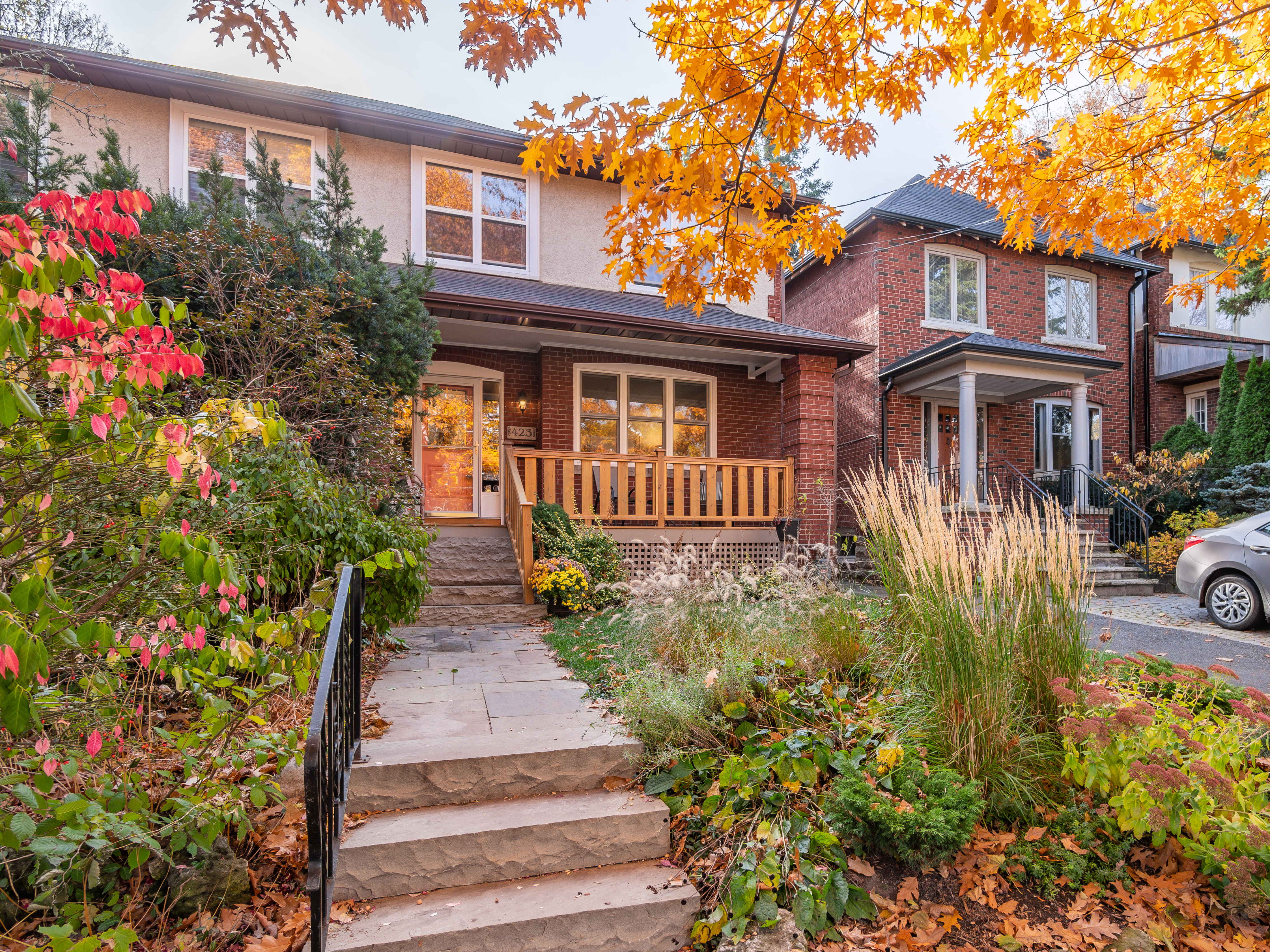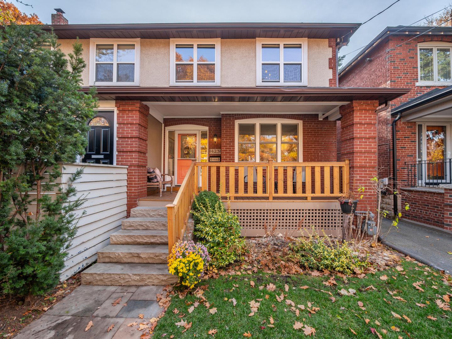 Set on a wide 23.5 x 143 foot south facing lot. 423 St Clair Avenue East is a beautiful property with a natural stone front walkway and a pretty covered front porch. The backyard is fully fenced with side gate access and offers a raised wooden deck, lower interlock patio and a low maintenance garden with mature trees. The custom garden shed is spacious and ideal for all types of outdoor storage requirements.