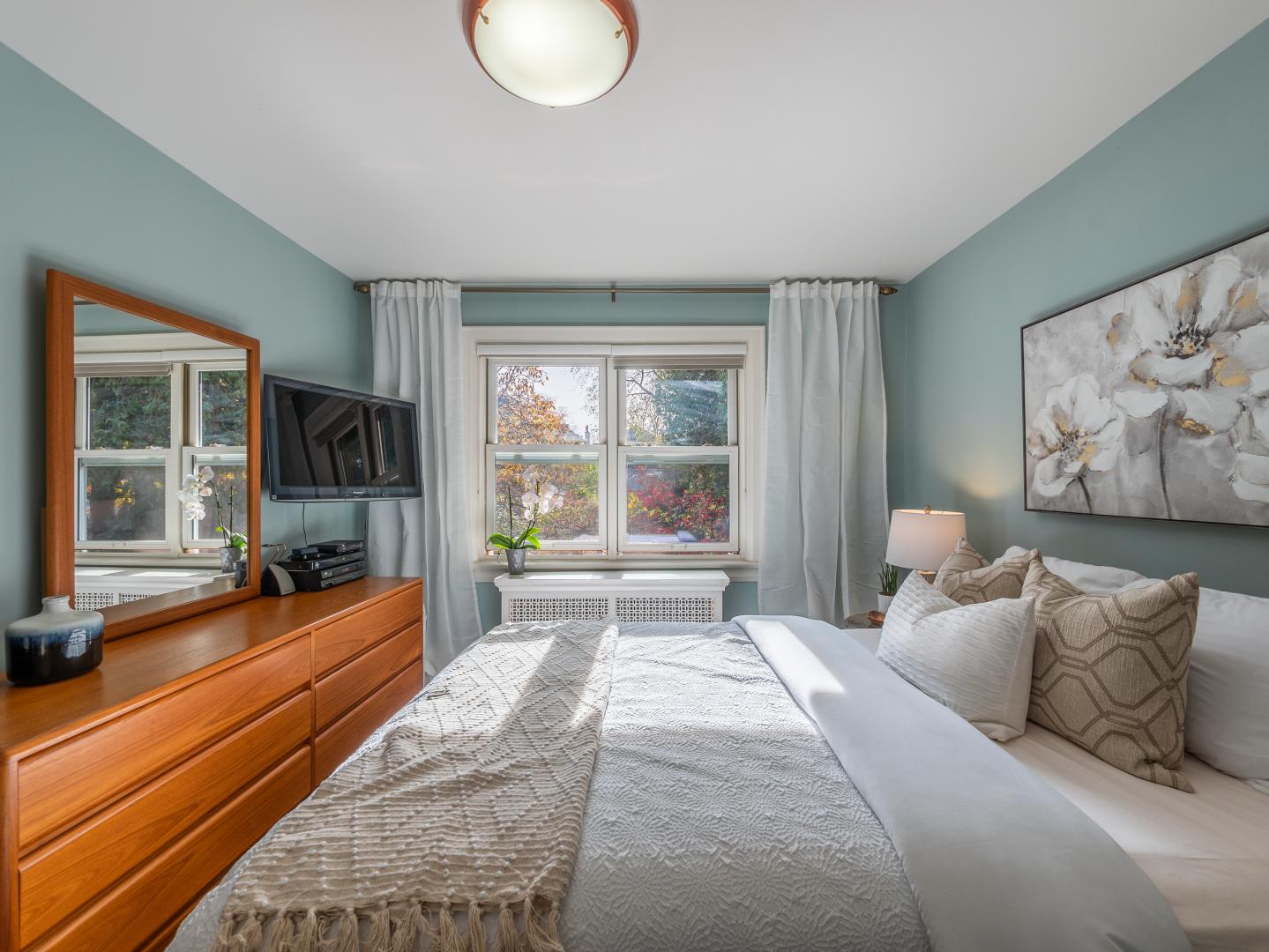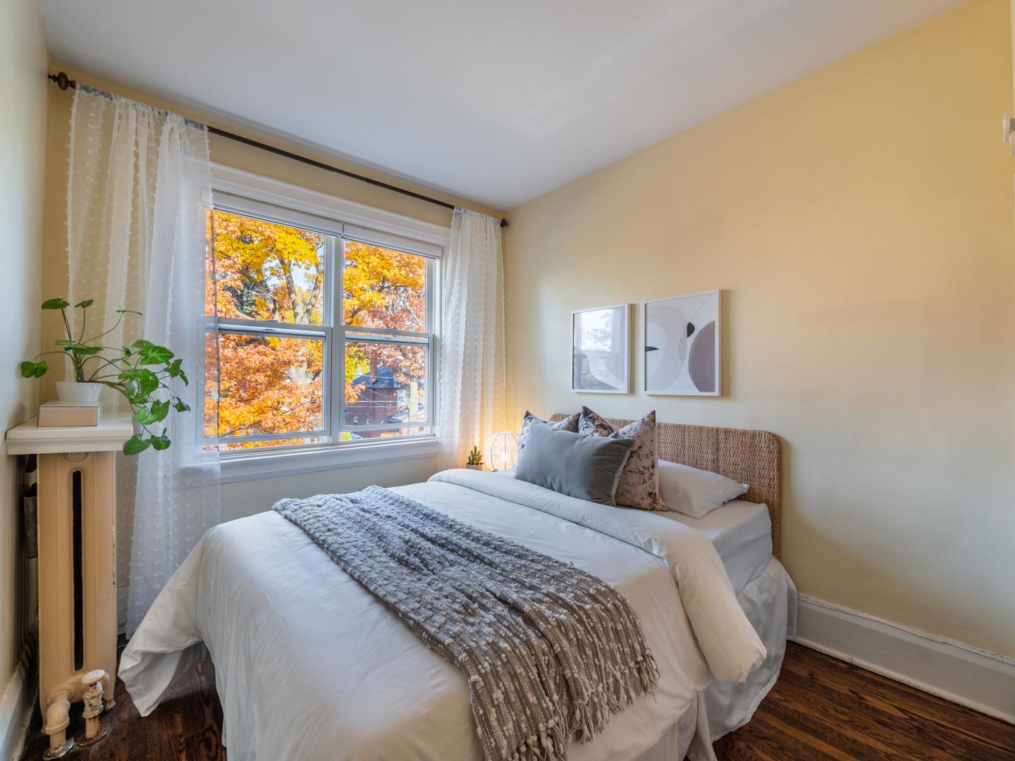 Upstairs, the width and overall generous size of this semi can be felt. All the bedrooms are a fabulous size and feature hardwood floors and deep closets. The 5-piece bathroom has an updated double vanity with ample storage and a bathtub/shower combination. A bonus linen closet can be found just outside the bathroom in the hallway.