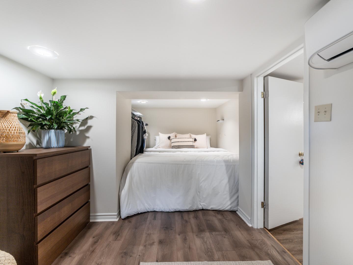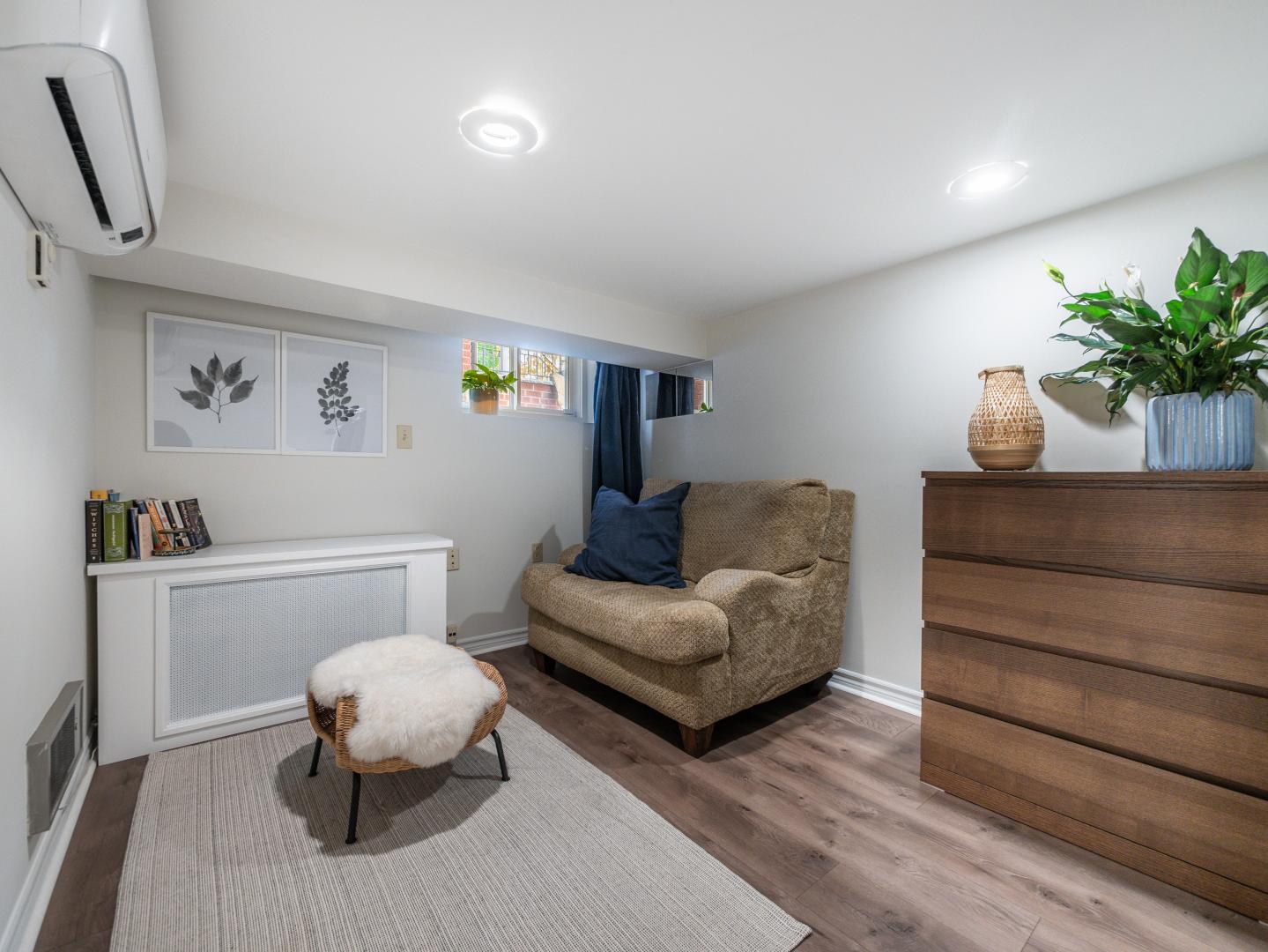 The lower level of this Moore Park home features a 1 bedroom apartment with a separate side entry. An open concept galley style kitchen awaits with upgraded appliances. The combined living room and dining room is flexible in layout and has been upgraded with laminate flooring and pot lights. The large bedroom can fit a king sized bed with additional room for a sitting area or ample closet space. A 4-piece bathroom and shared laundry area completes the interior of this home.